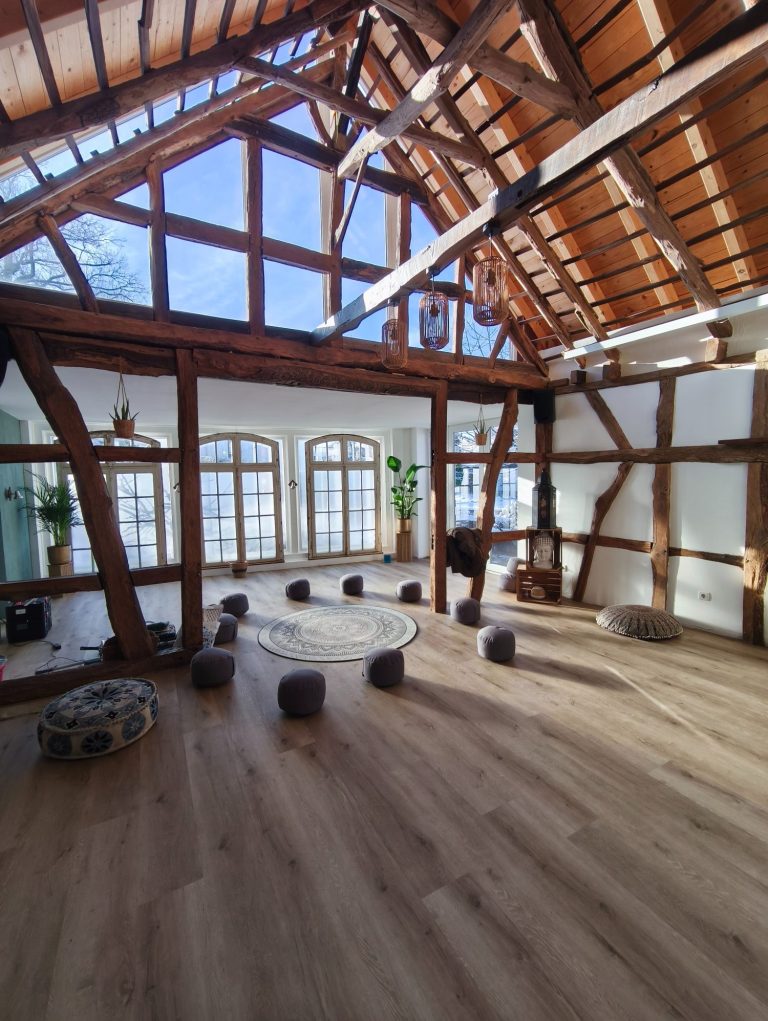 - Beamer, Leinwand, Musikanlage, WLAN, Meditations- und Sitzmaterial, Kaffee- & Teestation, Küche mit Herd & Kühlschrank,